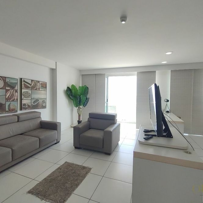 Maravilhoso flat, todo mobiliado, bem amplo e muito confortável, com 70m², vista lindíssima do mar e sol nascente.