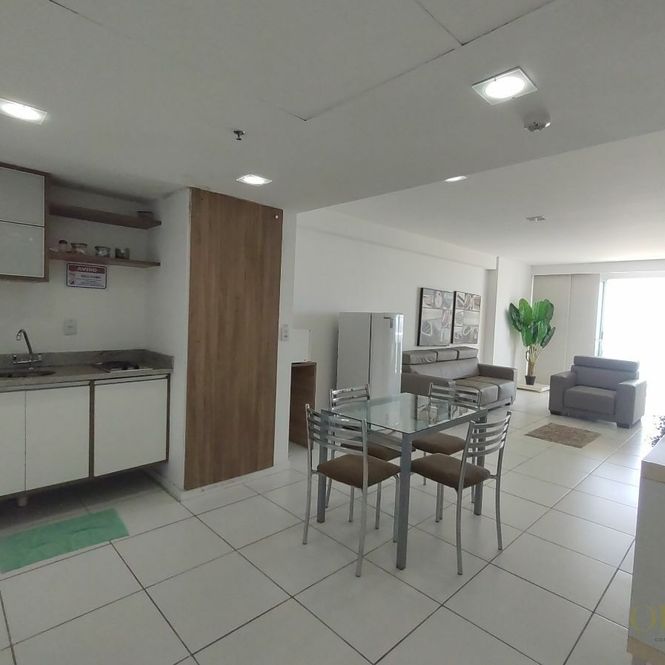 Composto por cozinha toda equipada já, sala com mesa de jantar, sofá, tv, mesa e cadeira de escritório, conta com uma cama de casal box e uma de solteiro, closet com armário planejado e banheiro espaçoso com armários.