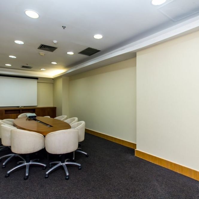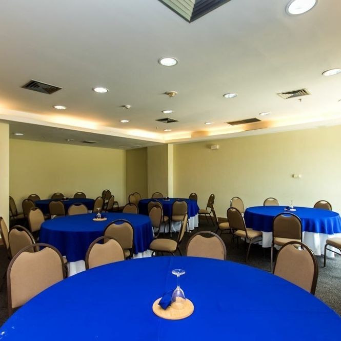 O hotel conta com cinco salas de eventos, ideal para reuniões e conferências, além de um Business Center disponível 24 horas por dia.