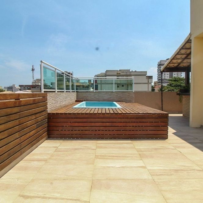 A área externa da cobertura é exclusiva e é composta por uma deliciosa varanda-gourmet com churrasqueira, piscina, lavabo, área de serviço coberta, espaço amplo.